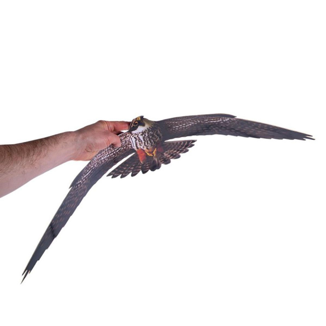 Отпугиватель голубей на балконе Хищник 2 изготовлен из пластика с наклеенным на нее оракалом (материал используемый в наружной рекламе), что позволяет ему прослужить не один сезон на палящем солнце, под проливным дождем, а также на морозе. Визуальный отпугиватель от птиц имеет форму орла в полете, что придает ей отличную реалистичность и правдоподобность.