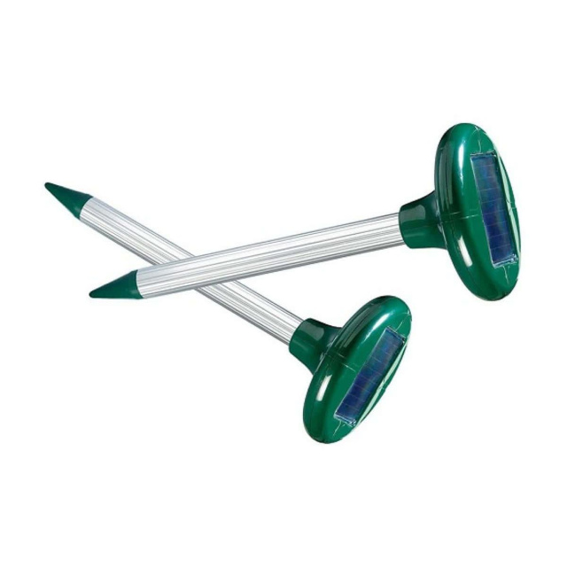 Отпугиватели от кротов на солнечных батареях Weitech WK2015 помогут легко избавиться от кротов, землероек, слепышей, полевок, змей, медведки. Каждый прибор от кротов имеет встроенный аккумулятор, который заряжается от солнечной батареи и позволяет прибору непрерывно работать ночью и в пасмурную погоду. Прочный защищенный от влаги пластиковый корпус и металлическая ножка. Площадь действия одного отпугивателя до 200 квадратных метров (2 сотки).