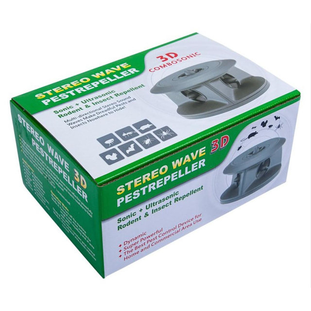 Промышленный ультразвуковой отпугиватель мышей крыс для склада и ангара LS-967 эффективен против мышей, крыс, тараканов, пауков, блох, клещей и других насекомых, белок и летучих мышей. Имеет три ультразвуковых динамика и предназначен для работы в объемных помещениях. Его принцип действия заключается в раздражающем действии ультразвука на нервную систему и слух вредителей, которые со временем уходят в другое место. Отпугиватель мышей безопасен для человека.