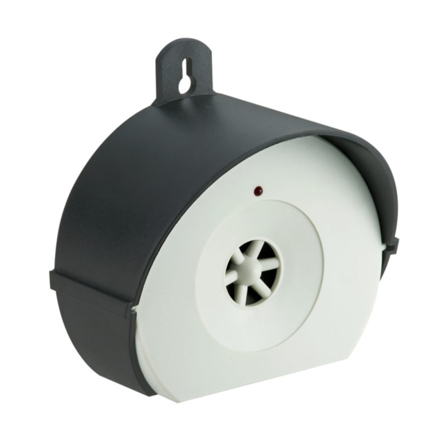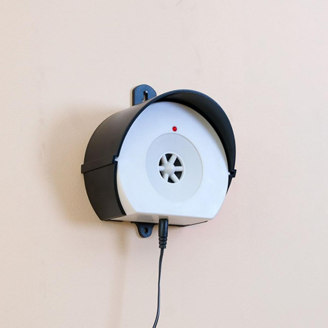 Стационарный отпугиватель собак и котов генерирует ультразвуковые волны на расстояние до 15 метров под углом 90 градусов и покрывают площадь до 200 квадратных метров. Находясь в зоне действия прибора у кошек и собак начинаются неприятные болевые ощущения в ушах и они покидают зону действия прибора.