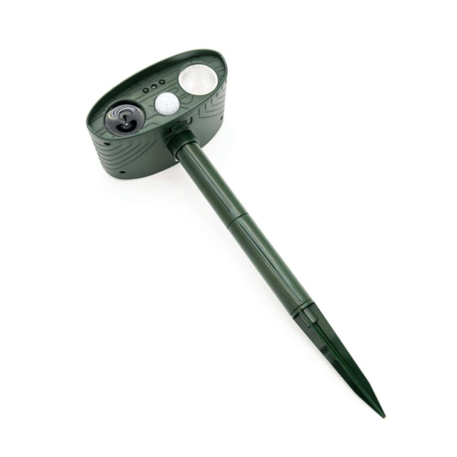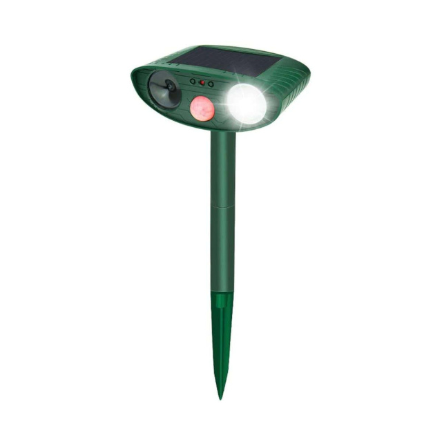 Стационарный отпугиватель собак и котов на солнечной батарее 511B надежно защитит от собак, кошек, грызунов, белок, куниц и и других животных участок до 84 квадратных метров. Имеет встроенный датчик движения с дальностью действия 10 метров и углом охвата 110 градусов. Влагозащищенный корпус пластиковый корпус. Работает от солнечной батареи днем и от встроенного аккумулятора ночью. Мигающие во время работы светодиоды оказывают дополнительный отпугивающий эффект.
