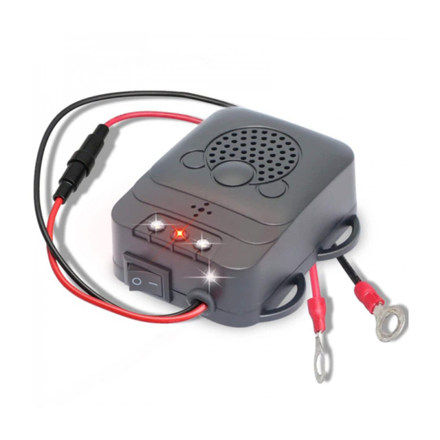 Подключите отпугиватель крыс и мышей к автомобильному аккумулятору 12 В, соединив красный провод с "+" и черный провод с "-". Устройство начнет автоматически работать, на что укажет загоревшийся светодиод. Звук от устройства человек обычно не слышит. Светодиоды загораются в зависимости от режима, режим работы меняется хаотично для того, чтобы не возникало привыкание у вредителей.