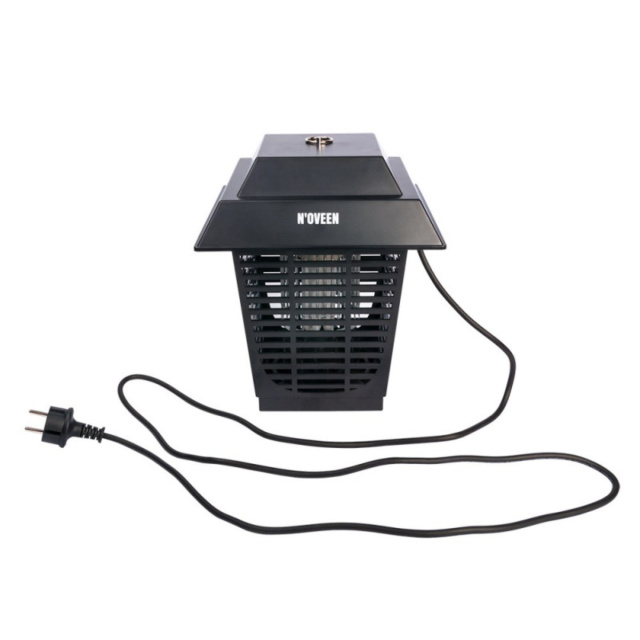 Лампа уничтожитель комаров мух насекомых Noveen IKN-22 в включенном состоянии излучает уф-свет, который очень сильно привлекает летающих насекомых с площади до 130 квадратных метров. Слетевшиеся на свет насекомые умирают после прикосновения к сетке под высоким напряжением.