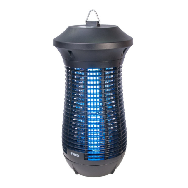 Лампа уничтожитель комаров мух насекомых Noveen IKN-24 в включенном состоянии излучает уф-свет, который очень сильно привлекает летающих насекомых с площади до 150 квадратных метров. Слетевшиеся на свет насекомые умирают после прикосновения к сетке под высоким напряжением.