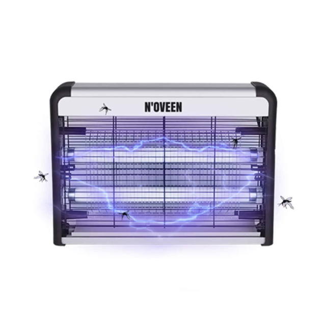 Ультрафиолетовый уничтожитель насекомых Noveen IKN220 Economic полностью безопасен для людей и животных, излучает свет со специальной длиной волны, эффективно привлекающей летающих насекомых без использования химических веществ или других вредных веществ. Насекомые, после заманивания, погибают в сетке перед источником света с напряжением 3000 Вт. Мертвые насекомые попадают в специальный выдвижной лоток и легко оттуда убираются.