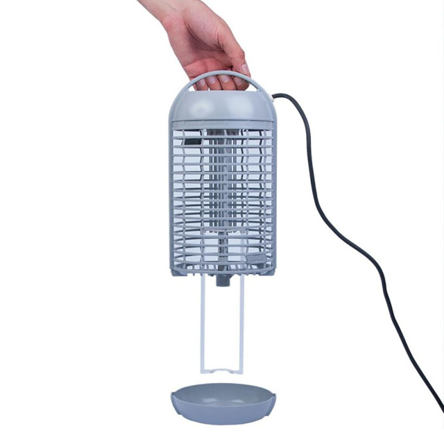 Лампа уничтожитель комаров мух насекомых Mo-El CriCri-300N имеет довольно простой принцип действия: в качестве приманки в светильнике используются одна ультрафиолетовая лампа мощностью 6 Ватт. Специальный диапазон и источник света привлекают насекомых в темное время суток. Вокруг лампы от комаров расположена специальная сетка, через которую проходит электрический ток с напряжением 1500 вольт. Подлетая к лампе, вредители уничтожаются электрическим разрядом и попадают на съемный поддон, с которого они быстро и легко удаляются.
