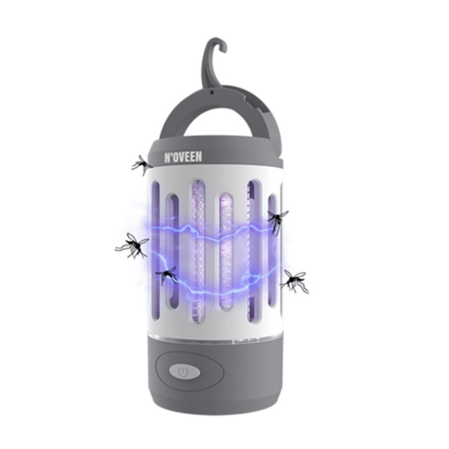Лампа от комаров мух насекомых светодиодная на аккумуляторе Noveen IKN824 LED IPХ4 работает в 3-х режимах: яркий свет, приглушенный свет и/или уничтожитель насекомых. Площадь действия - 40 квадратных метров. Работает до 14 часов от встроенного аккумулятора, который заряжается через USB. Водонепроницаемость IPХ4.