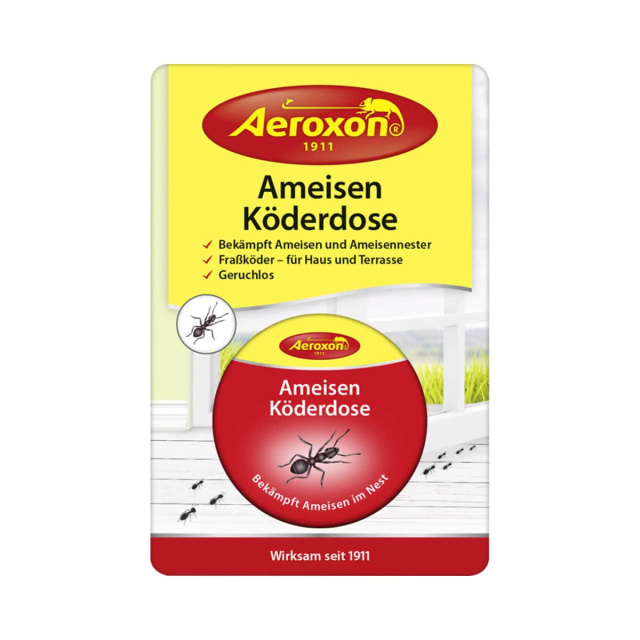 Средство от муравьев Aeroxon Ameisen привлекает насекомых и воздействует на их нервную систему. Муравьи несут ее королеве и выводку, таким образом, в течение короткого времени погибает вся колония.