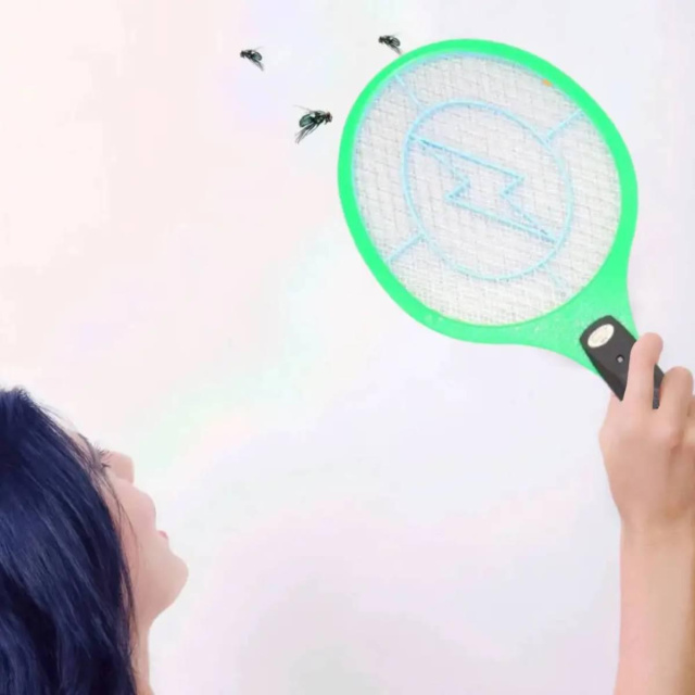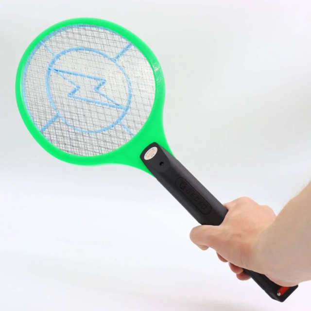 Принцип работы мухобойки на батарейках заключается в том, что в момент попадания насекомого на металлическую сетку необходимо нажать на ручке специальную кнопку, в результате чего насекомое погибает от электрического разряда. Сила разряда не опасна для человека, однако трогать решетку все равно не стоит, так как можно повредить устройство.