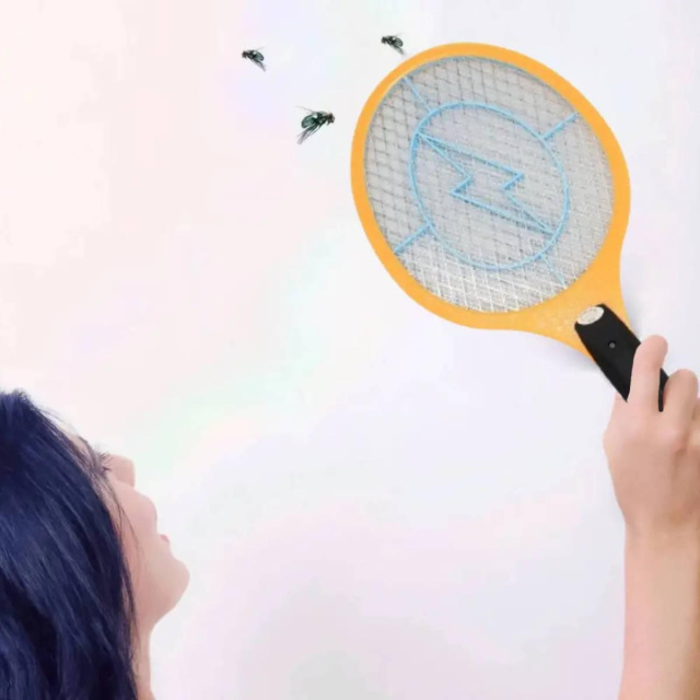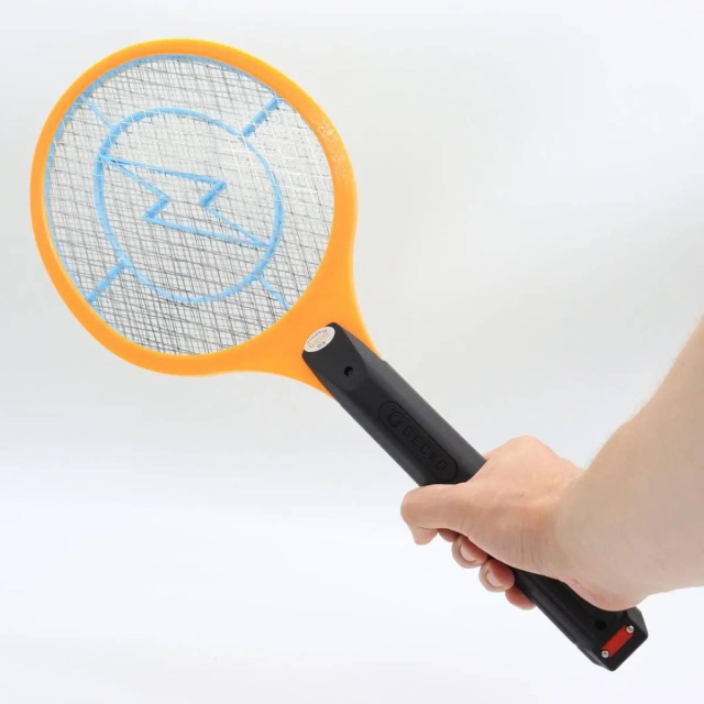 Принцип работы мухобойки на батарейках заключается в том, что в момент попадания насекомого на металлическую сетку необходимо нажать на ручке специальную кнопку, в результате чего насекомое погибает от электрического разряда. Сила разряда не опасна для человека, однако трогать решетку все равно не стоит, так как можно повредить устройство.