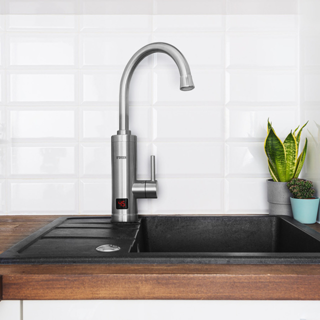 Проточный водонагреватель Noveen IWH850 INOX кран экономит время, энергию и воду. Идеально подходит для кухни, дачи, гаража, подсобного помещения, подвала, т.к. нагревает воду до 60° С всего за 3 секунды. Цифровой светодиодный дисплей, отображает текущую температуру воды. Монтаж в столешницу. Изготовлен из нержавеющей стали: INOX 304 SS