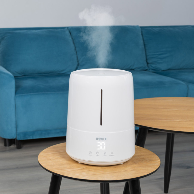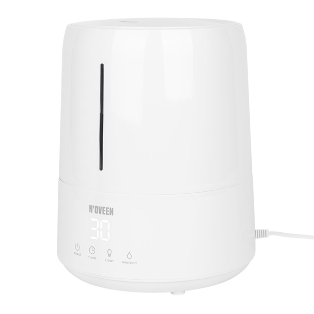 Ультразвуковой увлажнитель Noveen UH550 использует ультразвук для расщепления молекул воды диаметром около 1-5 мкм и сопряжения. Система вентиляции выводит расщепленные молекулы воды в сухой воздух, где при испарении мы получаем необходимую влажность. Четко видно гладкий и ровный пар, выходящий из увлажнителя воздуха. Таким образом, восстанавливается и поддерживается достаточный уровень влажности в помещении на уровне 40-60%. Конструкция ультразвукового увлажнителя воздуха сложнее, чем паровых увлажнителей, поэтому позволяет более точно контролировать влажность в помещении.