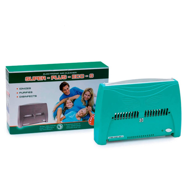 Очиститель-ионизатор воздуха с ароматизацией Супер Плюс ЭКО-С очистит воздух в помещении удалив в него, пыль, табачный дым, пыльцу растений, споры грибков, продукты жизнедеятельности домашних животных и клещей, оксиды серы, азота, тяжелых металлов. Встроенный ионизатор обогащает воздух в помещении озоном и делает его более свежим, бодрящим, приближенный к естественным природным характеристикам. Воздухоочиститель Супер Плюс Эко оказывает профилактическое и оздоравливающее воздействие при различных бронхолегочных заболеваний аллергической природы, расстройствах сна, устраняет синдром хронической усталости. Также очиститель ионизатор Супер Плюс ЭКО имеет электронную систему контроля состояния кассеты, которая информирует о необходимости чистки прибора, а также об отсутствии или неправильной установке кассеты в приборе.