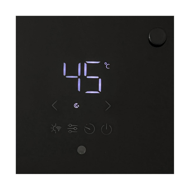 - Сенсорная светодиодная панель управления интегрирована в лицевую панель. Всегда можно точно определить температуру окружающей среды, быстро и легко установить необходимое целевое значение и даже поставить таймер.