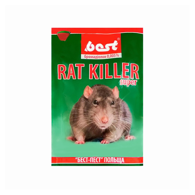 Яд для мышей мумифицирующий в гранулах Best - это эффективная средство для борьбы с грызунами без появления неприятных запахов. Как известно обычные яды и отравы от мышей и крыс убивают вредителей не сразу и грызуны умирают в своих укрытиях и со временем появляется неприятный запах. Мумифицирующий яд для мышей Best содержит в своем составе бродифакум в концентрации 0,0025 на 100 г, а также пищевые привлекающие компоненты и мумификаторы, которые не позволяют разлагаться мертвым грызунам. Отрава с мумифицирующим эффектом Best фактически высушивает мышь или крысу, после чего она не разлагается и не появляется неприятный запах.