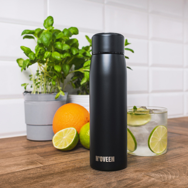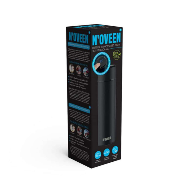 Термобутылка с дисплеем Noveen TB2110 Smart сделана из нержавеющей стали INOX SS304 и пластика BPA free (материалы, лишенные бисфенола А) и идеально подходит для работы, учебы, путешествий, спорта, т.к. в ней можно хранить и транспортировать как холодные, так и горячие напитки. Двойные стенки и специальная изолированная крышка держат температуру в термосе бутылке до 24 часов. Сенсорный светодиодный дисплей показывает температуру напитка внутри термобутылки.
