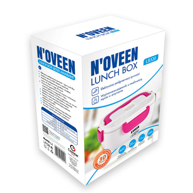 Контейнер для еды с подогревом Noveen LB320 Amarant имеет в своей конструкции нагревательный элементом, который позволяет разогревать пищу за 20 минут. Нагреватель плотно закрыт защелками, которые блокируют доступ воздуха. Благодаря этому блюдо дольше остается свежим. Контейнер для еды с подогревом Noveen LB320 Amarant изготовлен из высококачественных материалов BPA free (материалы, лишенные бисфенола А), что крайне важно при нагревании. Электрический ланч бокс Noveen LB320 работает от стандартной сети 220В. Ланч-бокс удобен в путешествиях, его можно брать на работу, учебу, водителю и использовать для подогрева пищи детям.