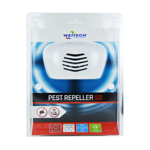 Отпугиватель грызунов и насекомых Weitech WK-0220 генерирует и излучает ультразвуковые сигналы, которые находятся выше порога восприятия человека и таких животных как кошки и собаки, однако крысы, мыши, полевки, летучие отлично его слышат и реагируют на него. Для них сигнал отпугивателя звучит очень громко и неприятно, вызывая постоянную тревогу и страх. Жить в таких условиях становится невозможно, поэтому вредители вскоре покидают зону действия ультразвукового отпугивателя грызунов.