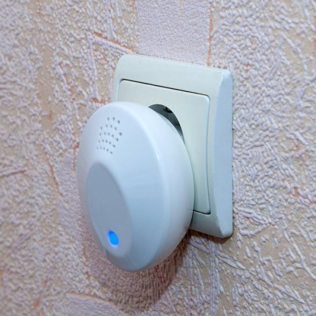 Ультразвуковой отпугиватель мышей и крыс SD-073 генерирует и излучает ультразвуковые волны на частоте 25 кГц, которые оказывают резкое негативное воздействия на мышей, крыс и других грызунов. Находясь в зоне действия ультразвука у грызунов парализуется физиологическую активность, появляется чувство тревоги, испуга, страха, они не могут нормально питаться и размножаться и вынуждены покинуть зону действия прибора. Для усиления эффекта отпугивания грызунов в данном отпугивателе мышей использован также световой эффект, который оказывает дополнительное пугающее воздействия ночью или в помещении без света.