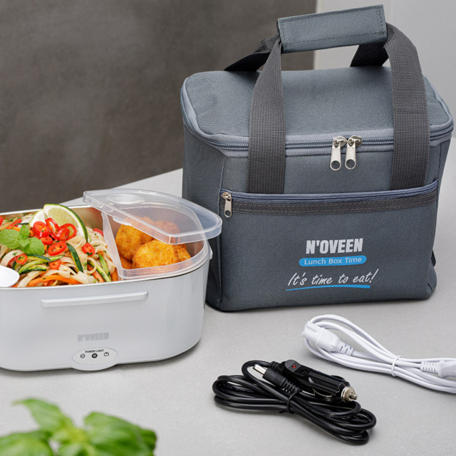 Ланч-бокс с подогревом из нержавеющей стали Noveen LB2410 имеет в своей конструкции нагревательный элемент, который позволяет разогревать пищу за 30 минут. Нагреватель плотно закрывается защелками, которые блокируют доступ воздуха. Благодаря этому блюдо дольше остается свежим. Термосумка позволяет сохранить прохладными продукты, а в нужный момент разогреть. Контейнер для еды с подогревом Noveen LB2410 изготовлен из высококачественных материалов BPA free (материалы, лишенные бисфенола А), что крайне важно при нагревании. Электрический ланч бокс Noveen LB2410 может работать как от стандартной сети 220В, от автомобильного прикуривателя 12В и от сети 24В в автобусах и грузовых автомобилях (кабель в комплекте). Ланч-бокс удобен в путешествиях, его можно брать на работу, учебу, водителю и использовать для подогрева пищи детям.