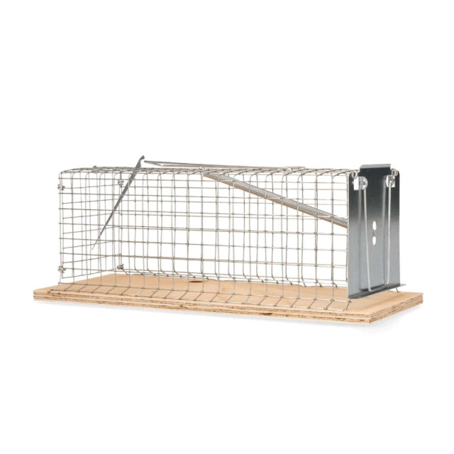 Использовать крысоловку-клетку достаточно просто - на подложке расположена проволочная клетка с дверкой. Внутрь ловушки на специальный крючок крепится любая приманка и когда грызун попадает в клетку - дверка закрывается при помощи мощной пружины. Такая ловушка крыс не вредит пойманному животному, но и выйти оно уже не может. Таким образом, ловушка для крыс оставляет животное в заточении живым.