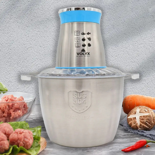 Кухонный блендер-измельчитель с чашей на 3л Volyx RS7315 голубой, 1600 Вт