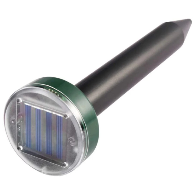 Ультразвуковой отпугиватель кротов на солнечной батарее Garden Pro поможет легко избавиться от кротов, землероек, слепышей, полевок, змей, медведки. Имеет встроенный аккумулятор, который заряжается от солнечной батареи и позволяет прибору непрерывно работать ночью и в пасмурную погоду. Прочный защищенный от влаги пластиковый корпус. Площадь действия до 500 квадратных метров.