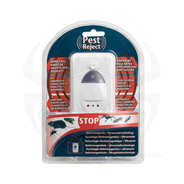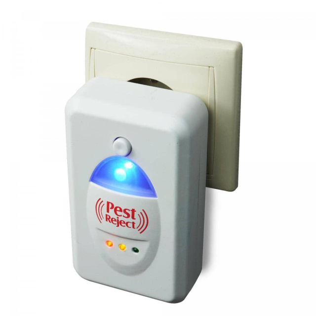 Электромагнитный и ультразвуковой отпугиватель грызунов и насекомых Pest Reject поможет быстро прогнать тараканов, муравьев, клопов, пауков а также мышей в квартире, доме, офисе а также других помещениях площадью до 100 квадратных метров. Благодаря использованию не только ультразвука, но и электромагнитных волн действует через стены, поэтому одного прибора достаточно на 2-3 комнаты.