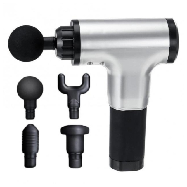 Ручной ударный массажер для тела с 4 насадками Fascial Gun KH-320 Grey
