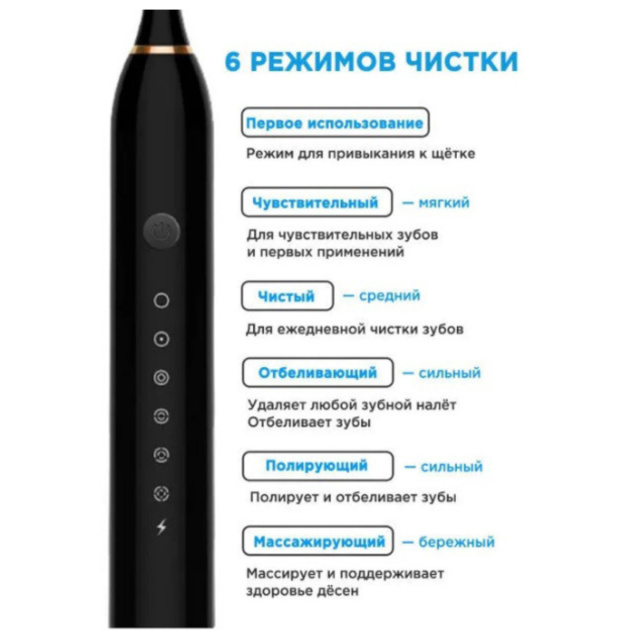 Электрическая ультразвуковая зубная щетка имеет 6 режимов работы, чтобы удовлетворить различные потребности: