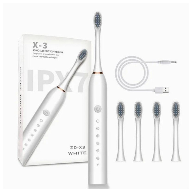 Электрическая ультразвуковая зубная щетка с 4-мя насадками Sonic Toothbrush X-3 - высокотехнологичный уход за полостью рта.