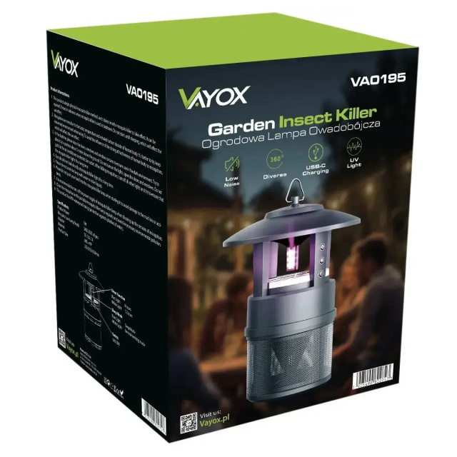 Ловушка-уничтожитель летающих насекомых садовая Vayox VA0195 предназначена для бесшумного, эффективного, а также гигиеничного уничтожения летающих насекомых, таких как комары, мухи, ночные бабочки, мошки и т.п. Площадь действия - 60 квадратных метров. Работает от сети 220В и потребляет всего 5 Вт.