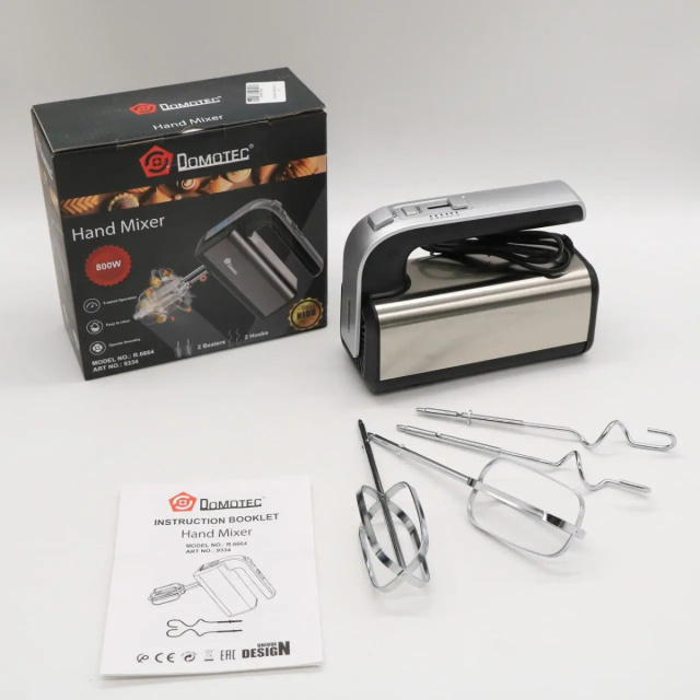 Кухонный миксер Domotec R-6664 станет вашим незаменимым помощником на кухне. Благодаря мощному мотору и нескольким режимам скорости, он легко справится с любыми задачами: от смешивания ингредиентов до замешивания теста.