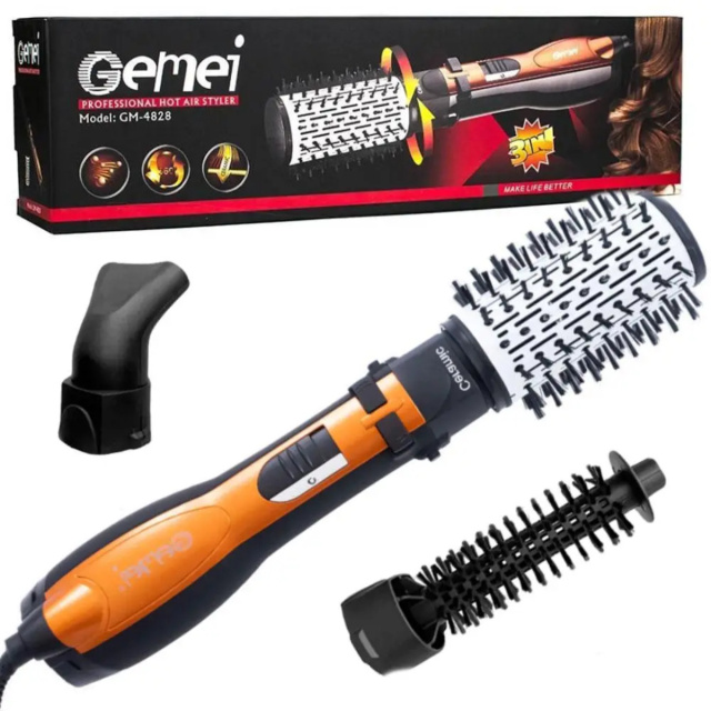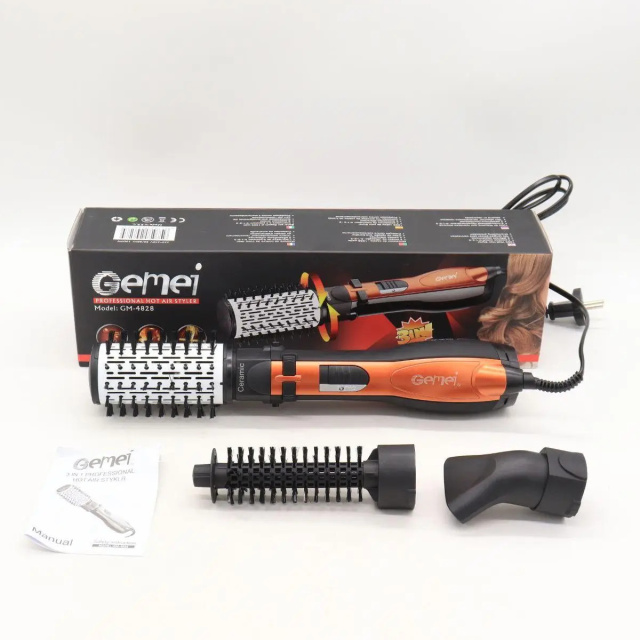Фен-щетка стайлер для волос с вращением и насадками Gemei GM 4828 - ваш ежедневный помощник в создании идеальной укладки.