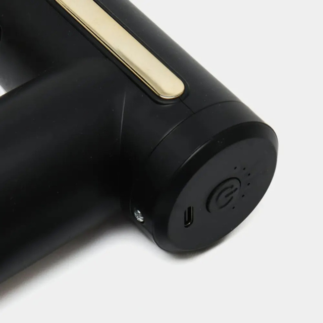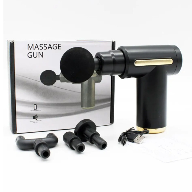 Ручной перкуссионный массажер для тела с 4 насадками Gun Massager Black - профессиональное восстановление и расслабление в любое время.