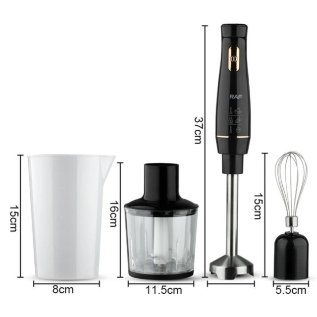 Ручной погружной блендер миксер измельчитель с чашей 600 мл RAF R 368B - это компактный и многофункциональный прибор для кухни, который объединяет в себе возможности блендера, миксера и измельчителя. Благодаря мощности 800 Вт он легко справляется с измельчением овощей, фруктов, орехов, приготовлением соусов, смузи, коктейлей и пюре.