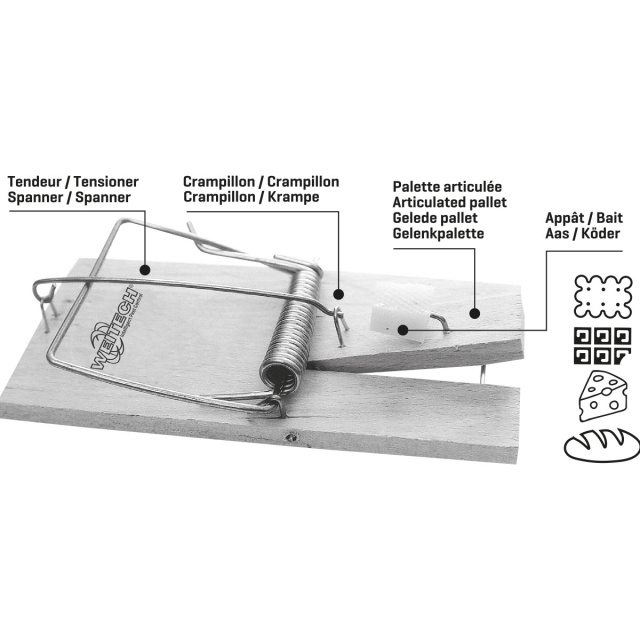 Ловушка для крыс крысоловка деревянная Weitech WK4010 Rat Trap - это механическая ловушка для крыс с прочным деревянным основанием и надежным металлическим механизмом захвата. Это простое, но эффективное средство для борьбы с грызунами в доме, на складе, в подвале или на даче. Конструкция ловушки обеспечивает мгновенное срабатывание при малейшем прикосновении, что гарантирует результативность и безопасность при правильном использовании. Крысоловка не требует электричества или химических приманок - достаточно разместить немного еды (например, сыр, колбасу или хлеб) в специальное место и установить устройство вдоль стены. Прочная пружина и металлический зажим обеспечивают быстрый и точный захват, предотвращая побег вредителя.
