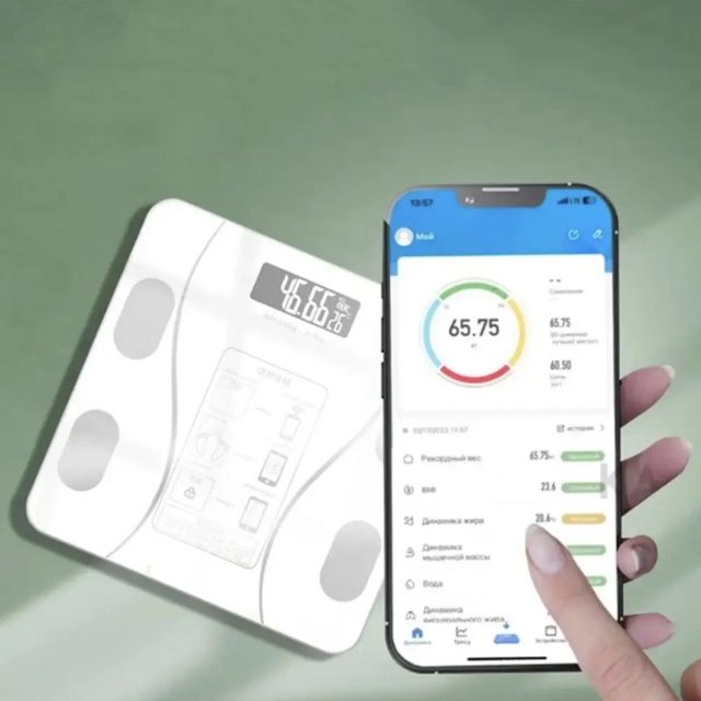Умные смарт-весы A-8003 подключаются к мобильному приложению через Bluetooth и передают измеренные данные на ваш смартфон. В приложении можно отслеживать изменения веса, следить за прогрессом, анализировать состав тела и даже получать рекомендации. Все данные автоматически сохраняются в профиле, поддерживается ведение статистики для нескольких пользователей.