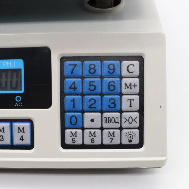 - Двухсторонний ЖК-дисплей с подсветкой - удобно и продавцу, и покупателю.