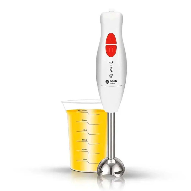 Погружной блендер BITEK BT-323 легко очищается, не занимает много места и станет незаменимым инструментом на любой кухне - от приготовления детского пюре до создания кремовых супов и коктейлей.